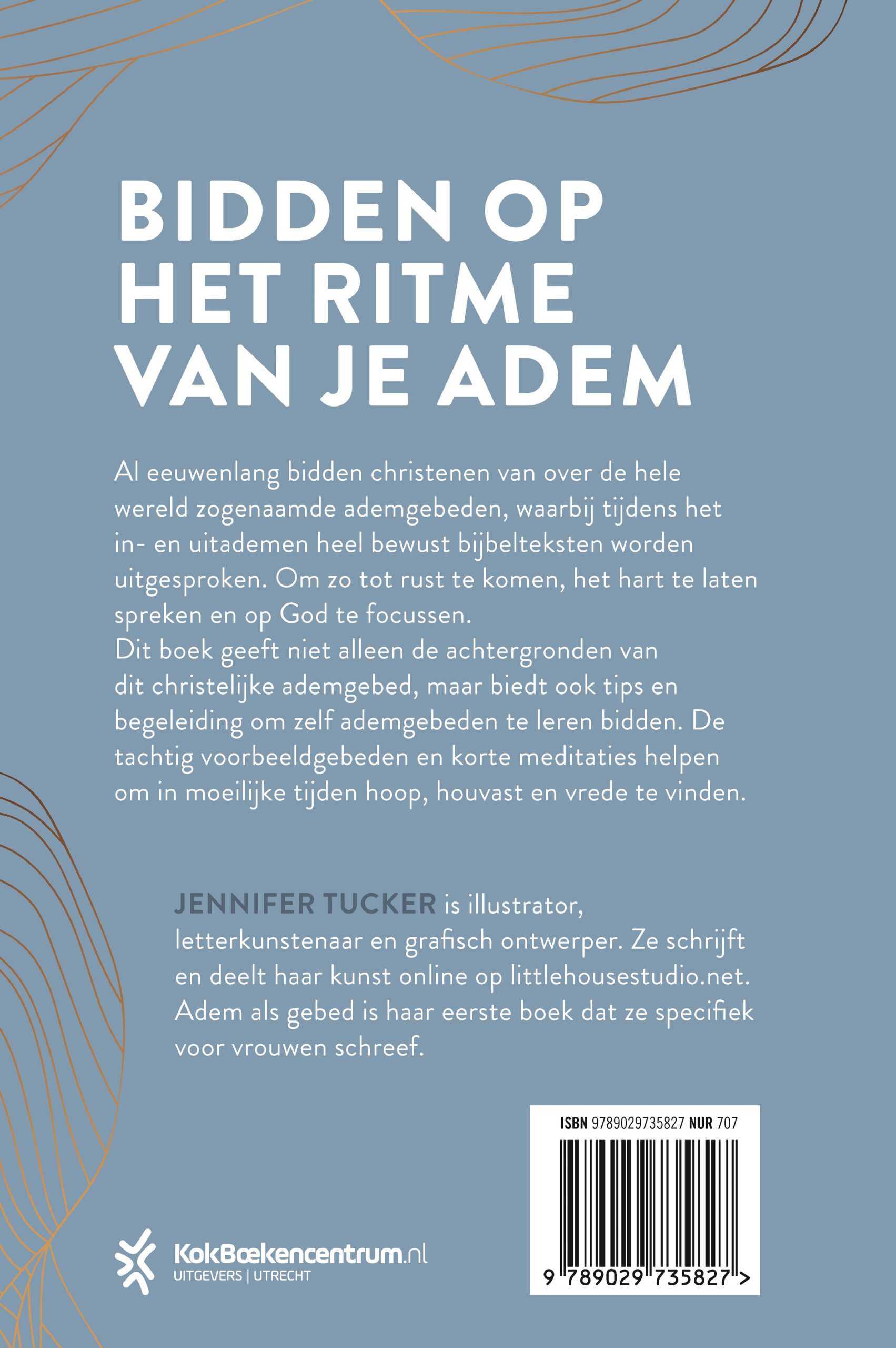 Adem als gebed van Jennifer Tucker is een praktisch boek dat lezers helpt om hun gebeden (opnieuw) vorm te geven op basis van ademhaling. Al eeuwenlang bidden christenen van over de hele wereld zogenaamde ademgebeden, waarbij tijdens het in- en uitademen heel bewust bijbelteksten worden uitgesproken. Om zo tot rust te komen, het hart te laten spreken en op God te focussen. Dit boek geeft niet alleen de achtergronden van dit christelijke ademgebed, maar geeft vooral ook tips en begeleiding om zelf ademgebeden te leren bidden. De tachtig voorbeeldgebeden en korte meditaties helpen om in moeilijke tijden hoop, houvast en vrede te vinden.