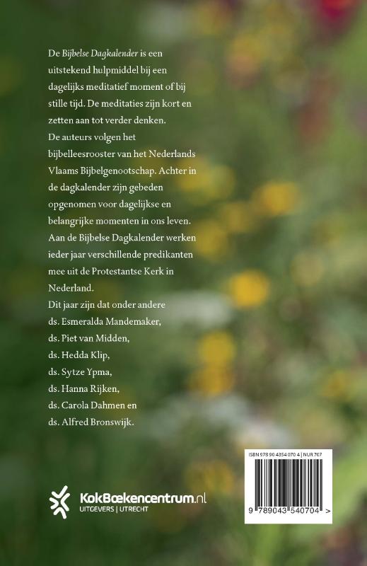 De belangstelling voor de Bijbelse Dagkalender is onverminderd groot. Al meer dan vijfenzeventig jaar bieden veel diaconieën, kerkelijke commissies en zorginstellingen het aan als geschenk met Kerst of met de jaarwisseling. Achttien protestantse predikanten bieden bemoedigende dagoverdenkingen voor stille tijd of aan tafel. Daarnaast bevat de Bijbelse Dagkalender mooie gebeden voor verschillende momenten.