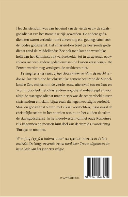 Het christendom was aan het eind van de vierde eeuw de staatsgodsdienst van het Romeinse rijk geworden. De andere godsdiensten waren verboden, met alleen nog een gedoogstatus voor de joodse godsdienst. Het christendom bleef de heersende godsdienst rond de Middellandse Zee ook toen later de westelijke helft van het Romeinse rijk verbrokkelde, tot in de zevende eeuw volken met een andere godsdienst aan de kusten verschenen. De Perzen werden nog verslagen, de Arabieren niet.’De lange zevende eeuw, of hoe christendom en islam de macht verdeelden’ laat zien hoe het christelijke gemenebest rond de Middellandse Zee, ontstaan in de vierde eeuw, uiteenviel tussen 600 en 750. In 600 leek het christendom nog overal onbedreigd en voor altijd de staatsgodsdienst maar in 750 was de zee verdeeld tussen christendom en islam, bijna zoals die tegenwoordig is verdeeld. Staat en godsdienst bleven met elkaar vervlochten, maar naast de christelijke staten in het noorden was nu in het zuiden de islam de staatsgodsdienst. In het noordwesten van het oude Romeinse rijk begonnen de mensen hun deel van de wereld al voorzichtig ‘Europa’ te noemen.