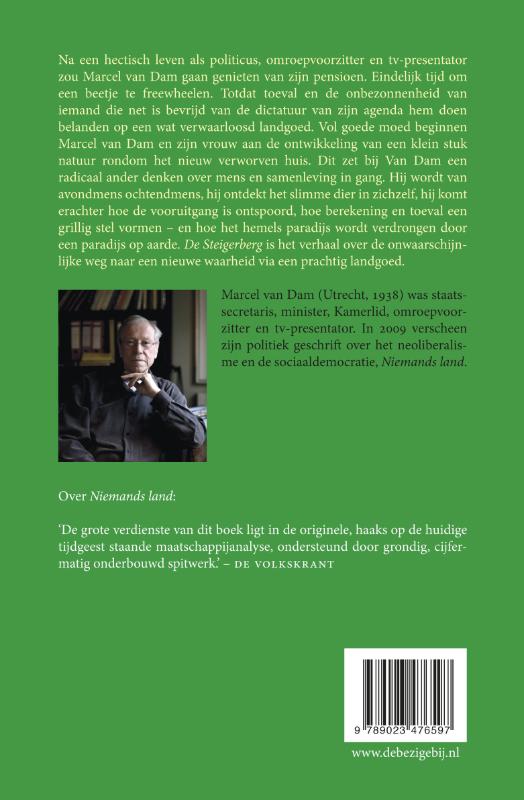 Na een hectisch leven als politicus, omroepvoorzitter en tv-presentator zou Marcel van Dam gaan genieten van zijn pensioen en van alles wat de moderne wereld te bieden heeft. Eindelijk tijd om een beetje te freewheelen. Totdat toeval en de onbezonnenheid van iemand die net is bevrijd van de dictatuur van zijn agenda hem doen belanden op een wat verwaarloosd landgoed. Vol goede moed beginnen Marcel van Dam en zijn vrouw te denken aan de ontwikkeling van een klein stuk natuur rondom het nieuw verworven huis. Zonder het te vermoeden begint hij daarmee aan een radicale herziening van zijn kijk op mens en samenleving. Hij wordt van avondmens ochtendmens, hij ontdekt het slimme dier in zichzelf, hij komt erachter hoe de vooruitgang is ontspoord, hoe de toekomst ons omarmt, hoe berekening en toeval een grillig stel vormen en hoe het hemels paradijs wordt verdrongen door een paradijs op aarde. De Steigerberg is het verhaal over de onwaarschijnlijke weg naar een nieuwe waarheid via een prachtig landgoed.
