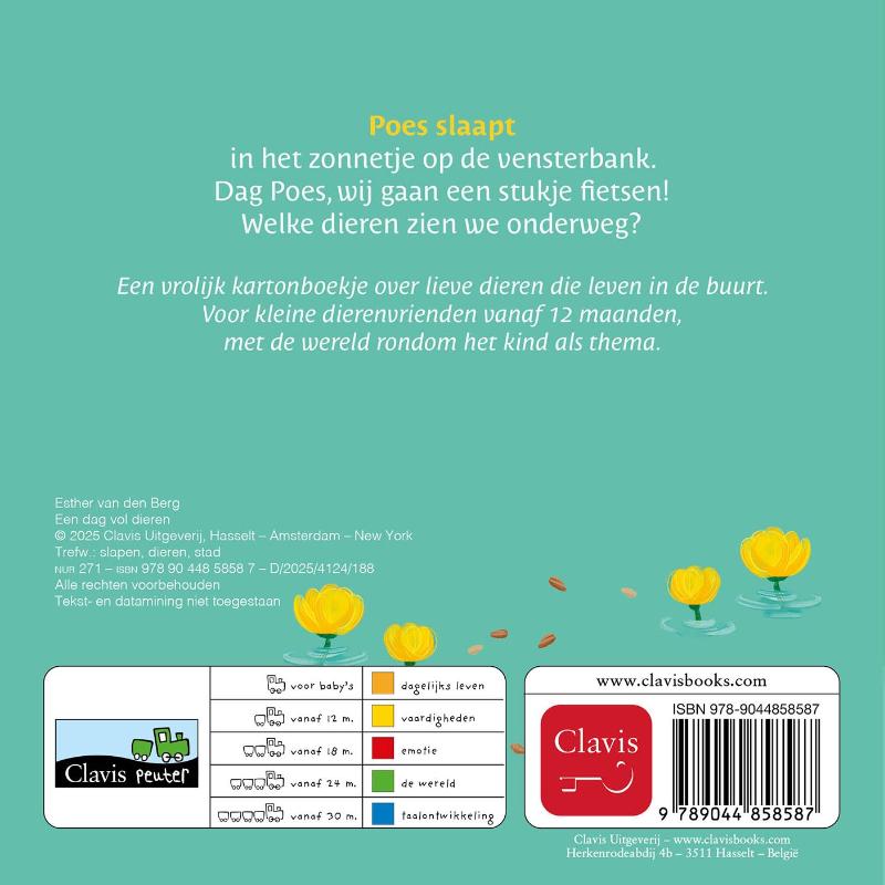 Poes slaapt in het zonnetje op de vensterbank.Dag Poes, wij gaan een stukje fietsen!Welke dieren zullen we zien onderweg?Een vrolijk kartonboek over lieve dieren die leven in de stad. Voor kleine dierenvrienden vanaf 12 maanden, met de wereld rondom het kind van het kind als thema.
