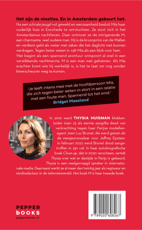 Het zijn de nineties. En in Amsterdam gebeurt het. Na een schrale jeugd vol geweld en eenzaamheid besluit Mia haar ouderlijk huis in Enschede te ontvluchten. Ze stort zich in het Amsterdamse nachtleven. Daar ontmoet ze de intrigerende M, een charmante, veel oudere man. Hij is de kroonprins van de Wallen en verdient geld als water met zaken die het daglicht niet kunnen verdragen. Tegen beter weten in valt Mia als een blok voor hem.Wat begint als een spannend avontuur ontspoort al snel in een verstikkende nachtmerrie. M is een man met geheimen. Als Mia erachter komt wie hij werkelijk is, is het te laat om nog zonder kleerscheuren weg te komen…