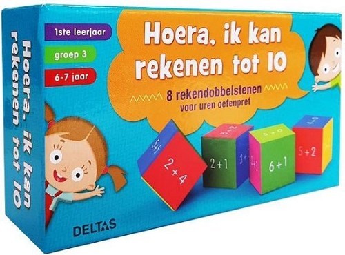 8 rekendobbelstenen voor uren oefenpret.Hoera, je leert rekenen! Dat is heel leuk, maar ook wel moeilijk. Daarom moet je veel oefenen, elke dag opnieuw. Want hoe meer je oefent, hoe vlotter het rekenen zal gaan. Met de leuke dobbelstenen in deze doos leer je op een speelse manier optellen tot tien. Neem een dobbelsteen, gooi en los de som op! Wedden dat jij een echte sommenkampioen wordt?