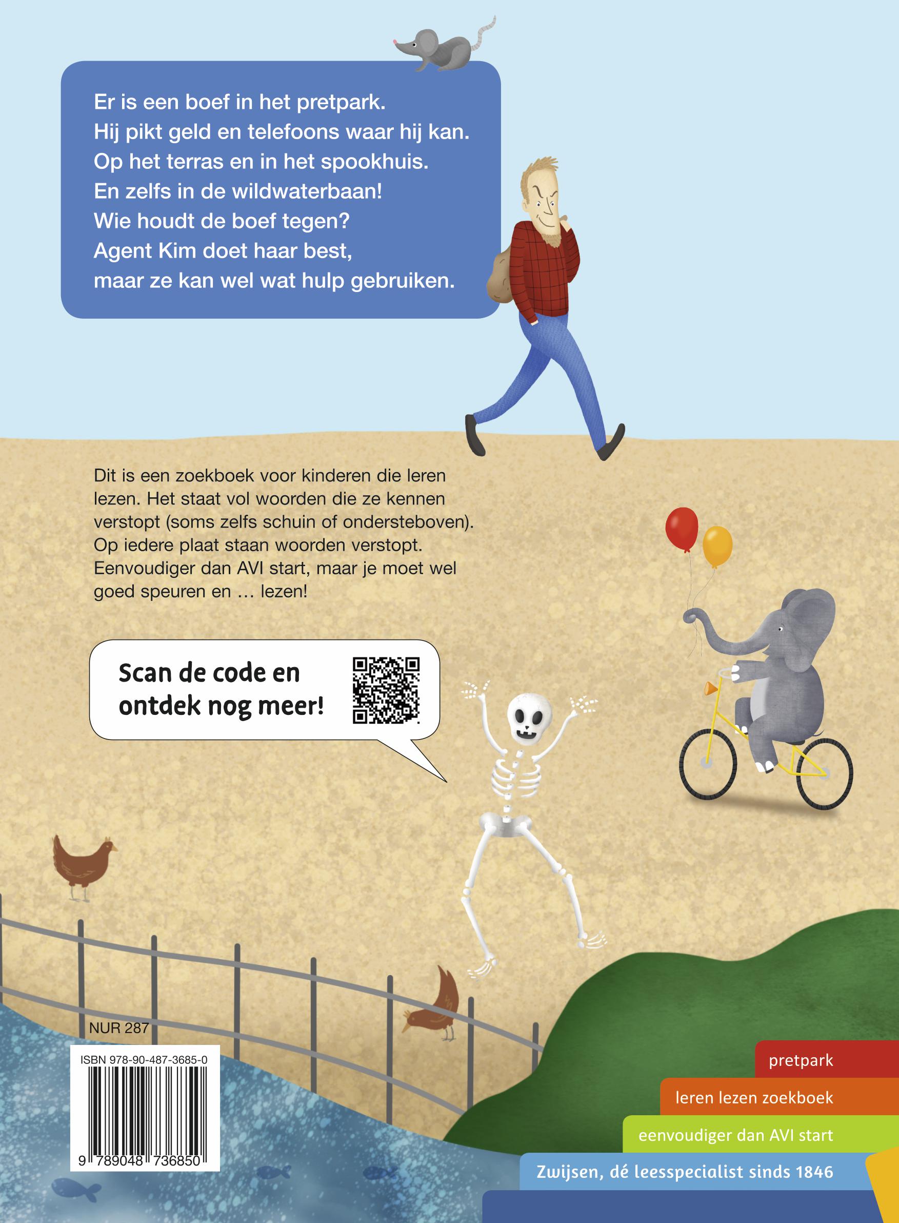Als je kind net leert lezen, wil het oefenen met alle woorden. Dat kan met dit leuke zoekboek waarin heel veel woorden verstopt staan in de illustraties. Het zijn de woorden die kinderen leren op school: kim, ik , maan, vis, roos, en nog veel meer. Je blijft kijken in dit boek over een pretpark waar heel veel te doen is. Eenvoudiger dan AVI start, maar je moet wel goed speuren en lezen! Dat maakt dit boek leuk én uitdagend.