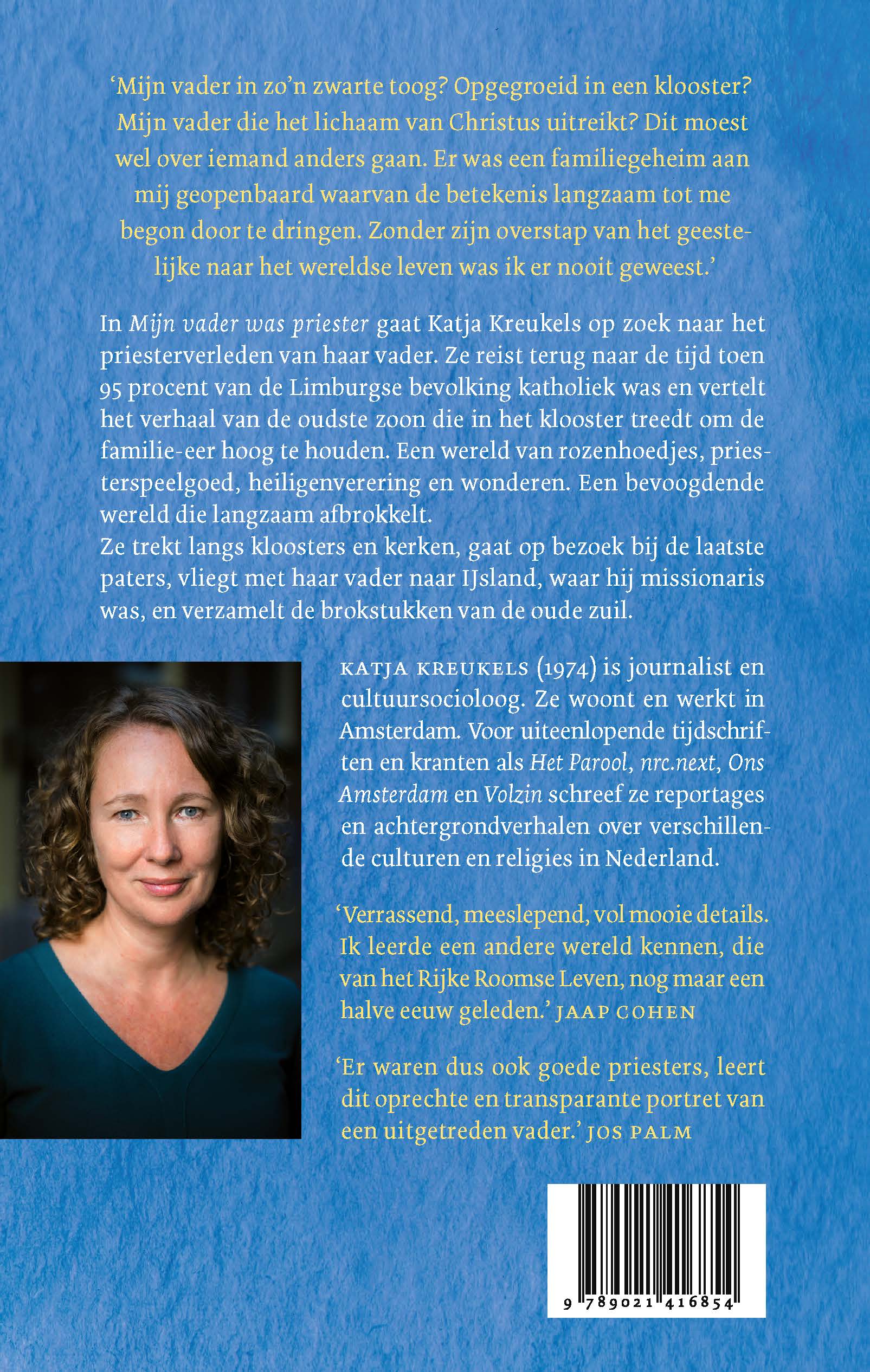 In Mijn vader was priester gaat Katja Kreukels op zoek naar het priesterverleden van haar vader. Ze reist terug naar de tijd toen 95 procent van de Limburgse bevolking katholiek was en vertelt het verhaal van de oudste zoon die in het klooster treedt om de familie-eer hoog te houden. Een wereld van rozenhoedjes, priesterspeelgoed, heiligenverering en wonderen. Een bevoogdende wereld die langzaam afbrokkelt.
