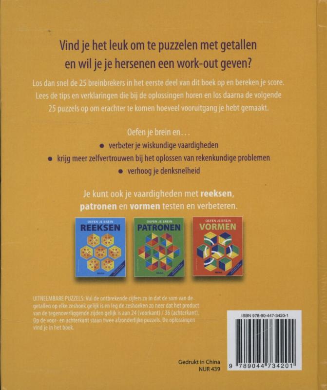 Vind je het leuk om te puzzelen met getallen en wil je je hersenen een work-out geven? Los dan snel de 25 breinbrekers in het eerste deel van dit boek op en bereken je score. Lees de tips en verklaringen die bij de oplossingen horen en los daarna de volgende 25 puzzels op om erachter te komen hoeveel vooruitgang je hebt gemaakt. Oefen je brein en… – verbeter je wiskundige vaardigheden – krijg meer zelfvertrouwen bij het oplossen van rekenkundige problemen – verhoog je denksnelheid