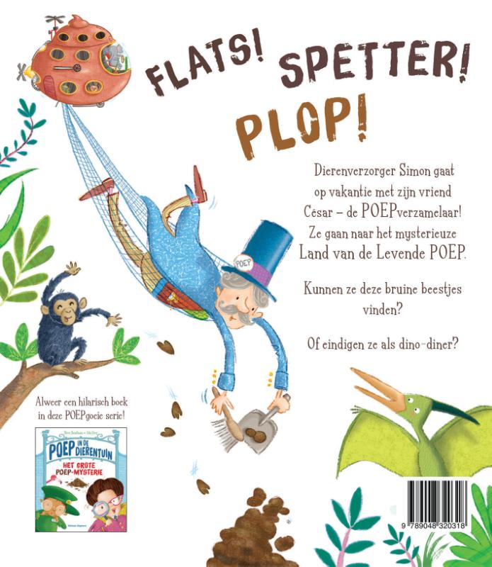 FLATS!SPLETTER!PLOP!Dierenverzorger Simon gaat op vakantie met zijn vriend César – de POEPverzamelaar! Ze gaan naar het mysterieuze Land van de Levende POEP.Kunnen ze deze bruine beestjes vinden?Of eindigen ze als dino-diner?