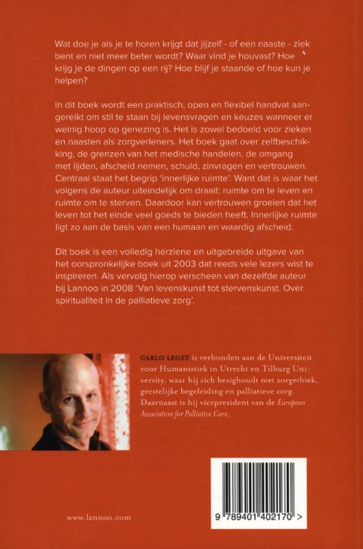 Carlo Leget over de kunst van het sterven Dit boek is geschreven zowel voor mensen die zich met hun levenseinde geconfronteerd zien, als voor mensen die – al dan niet beroepshalve – te maken hebben met het levenseinde van een ander. Carlo Leget laat in dit boek zien dat een goede omgang met het levenseinde alles te maken heeft met het geven en ervaren van ruimte. Dit boek wist al velen te inspireren. In deze herziene uitgave zijn een aantal belangrijke verbeteringen aangebracht en praktische handvatten toegevoegd.