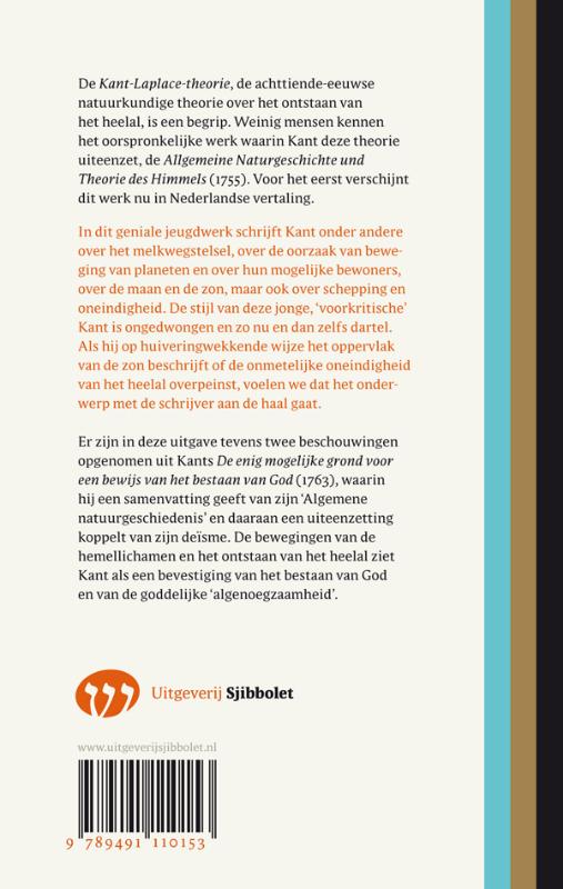 De ‘Kant-Laplace’-theorie, de achttiende-eeuwse natuurkundige theorie over het ontstaan van het heelal, is een begrip. Weinig mensen kennen het oorspronkelijk werk waarin Kant deze theorie uiteenzet, de ‘Allgemeine Naturgeschichte und Theorie des Himmels’ (1755). Voor het eerst verschijnt dit werk nu in Nederlandse vertaling.