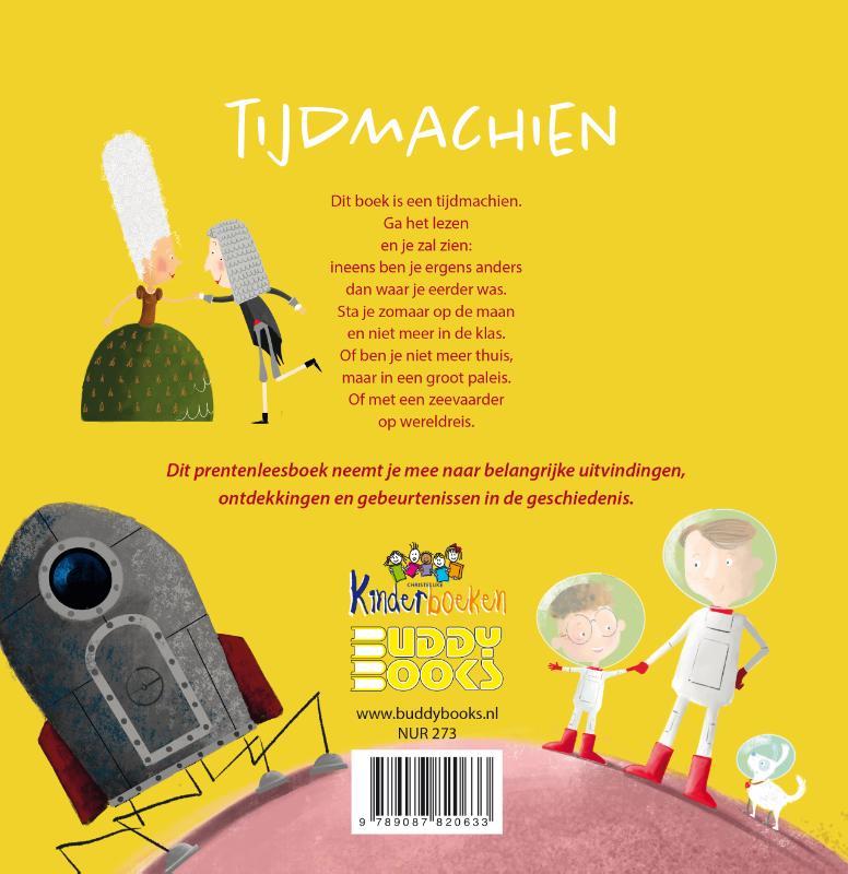 Dit boek is een tijdmachien.Ga het lezen en je zal zien:ineens ben je ergens andersdan waar je eerder was.Sta je zomaar op de maanen niet meer in de klas.Of ben je niet meer thuis,maar in een groot paleis.Of met een zeevaarder op wereldreis.Tijdmachien neemt je mee naar belangrijke uitvindingen, ontdekkingen en gebeurtenissen uit de geschiedenis.Inclusief tijdlijn.Dit boek is speciaal geschreven voor de Kinderboekenweek 2020.