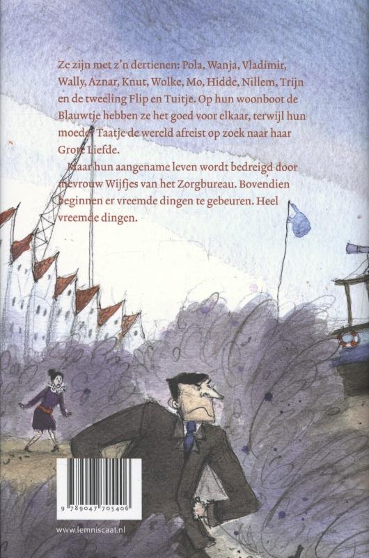 Ze zijn met z’n dertienen: Pola, die alles vertelt, Wanja, Vladimir, Wally, Aznar, Knut, Wolke, Mo, Hidde, Nillem, Trijn en de tweeling Flip en Tuitje. Een allegaartje van aangewaaide kinderen die samen een chaotisch maar prima bestaan leiden op een woonboot, terwijl hun moeder de wereld afstruint.