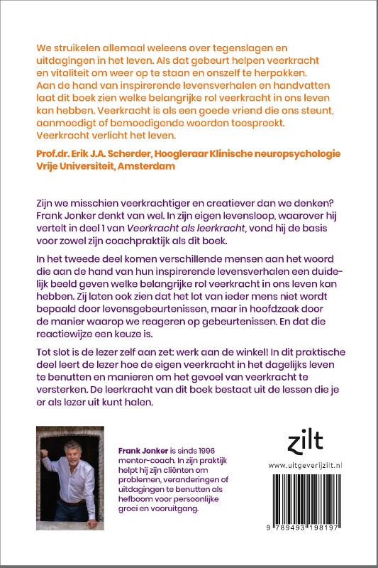 Zijn we misschien veerkrachtiger en creatiever dan we denken? Frank Jonker denkt van wel. Hij begint zijn boek Veerkracht als leerkracht met het vertellen van zijn eigen levensverhaal, waarin hij de basis vond voor zowel zijn coachingspraktijk als zijn boek. In het tweede deel van het boek interviewt de auteur onder anderen een vrouw met een onverwachte diagnose, een zoon van een Engelandvaarder, een Peshmergastrijder, een voormalig oorlogskind. Ook een leidinggevende die vertelt hoe ze tijdens de corona lockdown vanuit huis een team van 45 mensen aanstuurt. En een vrouw die vertelt hoe zij na de onverwachte dood van haar man de regie over haar leven hervond en zijn bijna failliete bedrijf weer winstgevend wist te maken. Al deze mensen vertellen hoe zij een complexe situatie konden omzetten naar een creatieve oplossing. Zij laten zien dat het lot van ieder mens niet wordt bepaald door levensgebeurtenissen, maar in hoofdzaak door de manier waarop we reageren op gebeurtenissen. En dat die reactiewijze een keuze is. In het laatste deel van Veerkracht als leerkracht is de lezer zelf aan zet: werk aan de winkel. In dit praktische deel leert de lezer hoe de eigen veerkracht in het dagelijks leven toe te passen en manieren om weer in contact te komen met het gevoel van veerkracht.